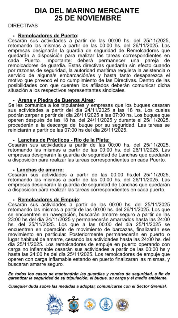 Estas directivas quedarán sin efecto cuando por razones de seguridad, la autoridad marítima requiera la asistencia o servicio de alguna/s embarcación/es y hasta tanto desaparezca el motivo que provocó el no cumplimiento de las Directivas.